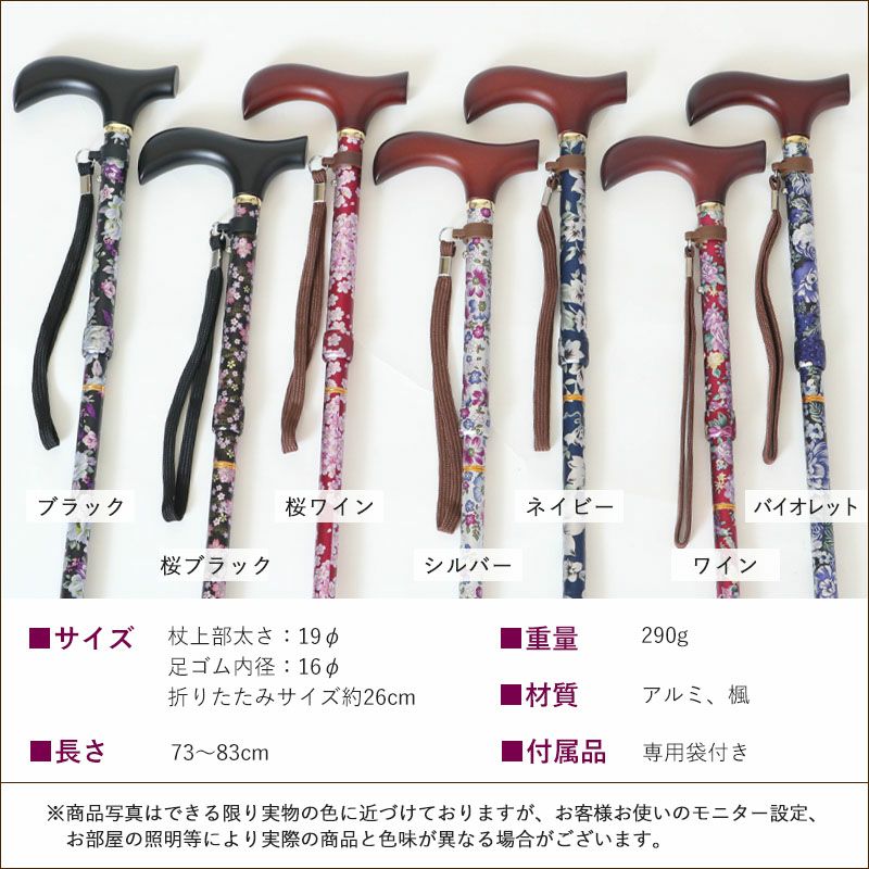 (サイズ)●杖上部太さ:直径19mm ●足ゴム内径:直径16mm 折りたたみサイズ約26cm