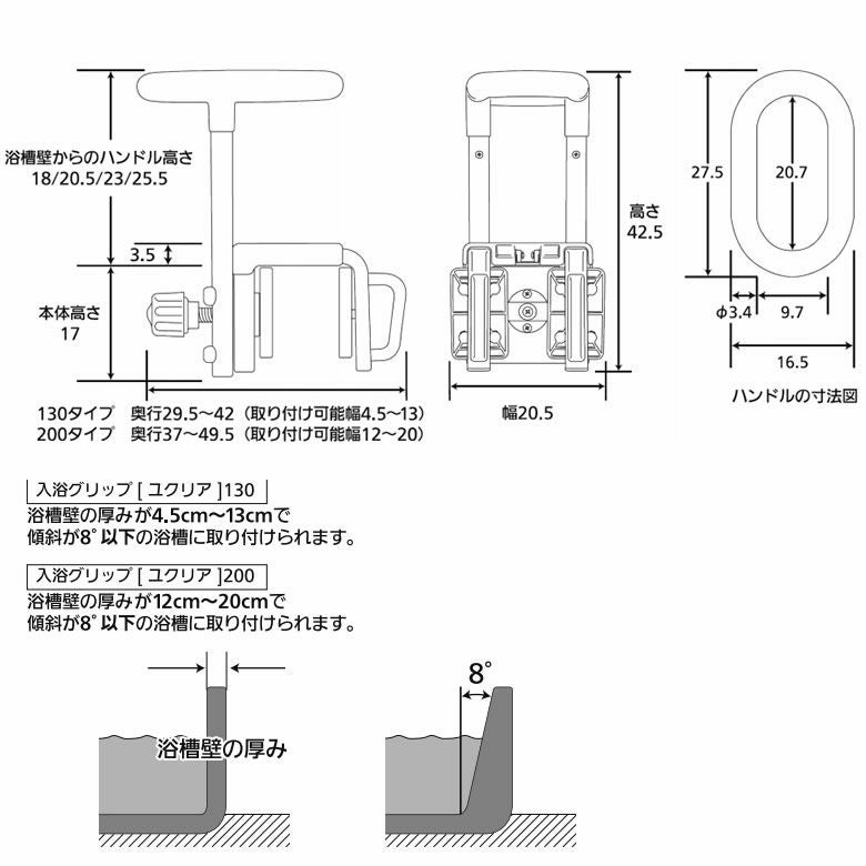 ●取付可能浴槽幅/4.5~13cm