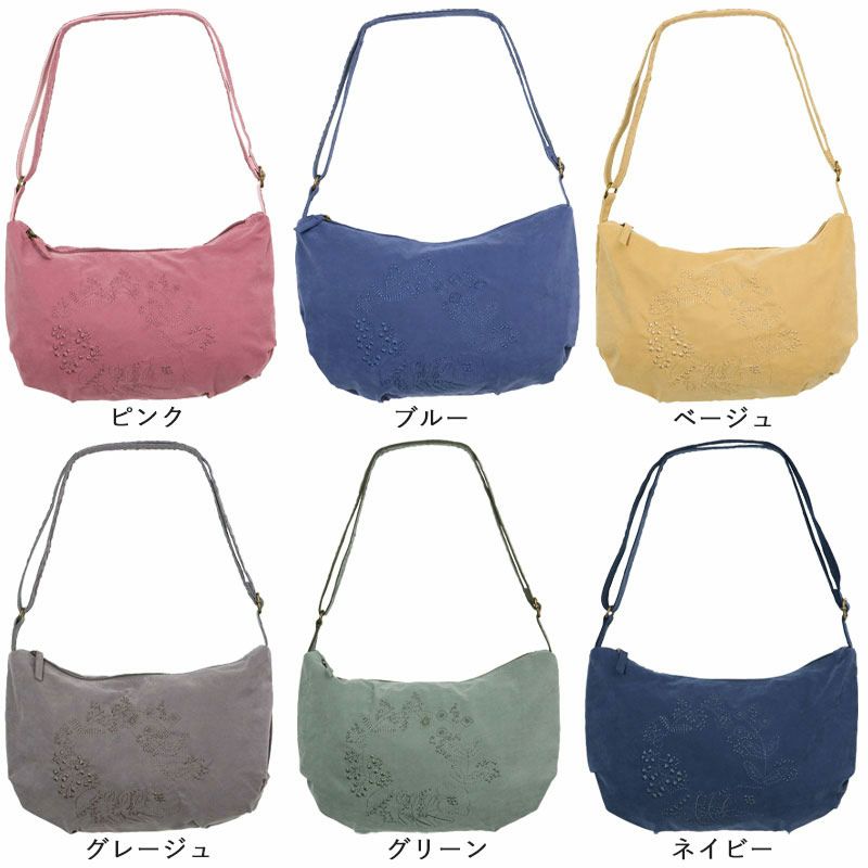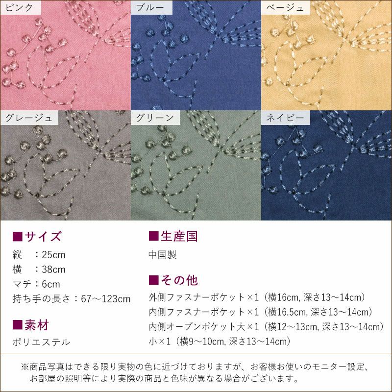ピーチスキン風 花刺しゅう ショルダーバッグ