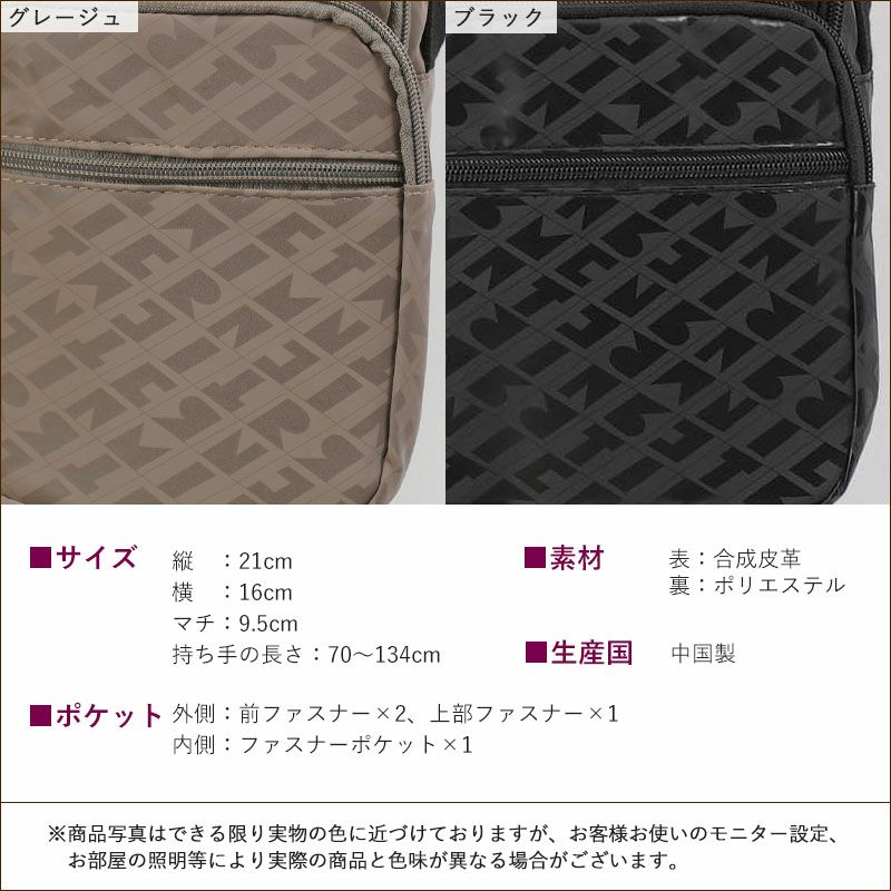 ●光沢感ある英字パターンが上品でおしゃれ。気軽なプレゼントにもおすすめのミニショルダーバッグです。