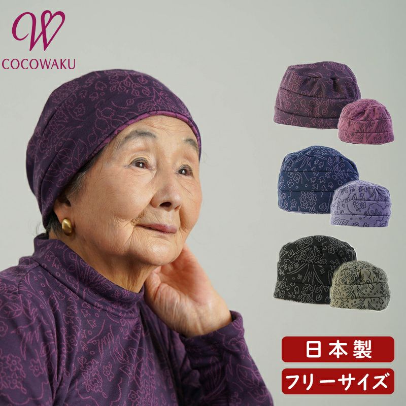 [CW] 日本製 花柄 リバーシブル やわらかニット 室内 帽子
