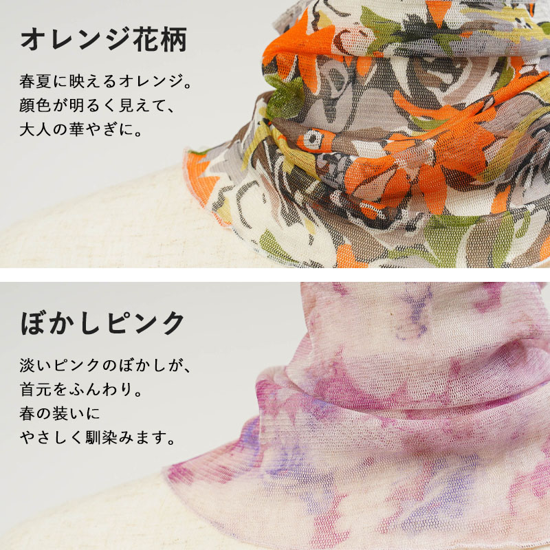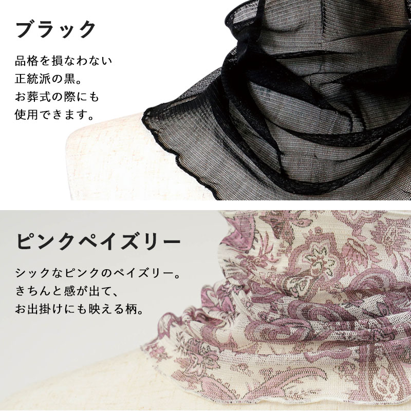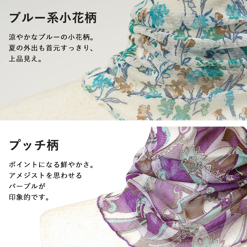 シルク100%のメッシュ素材なのでさらっとさわやかなネックカバー。