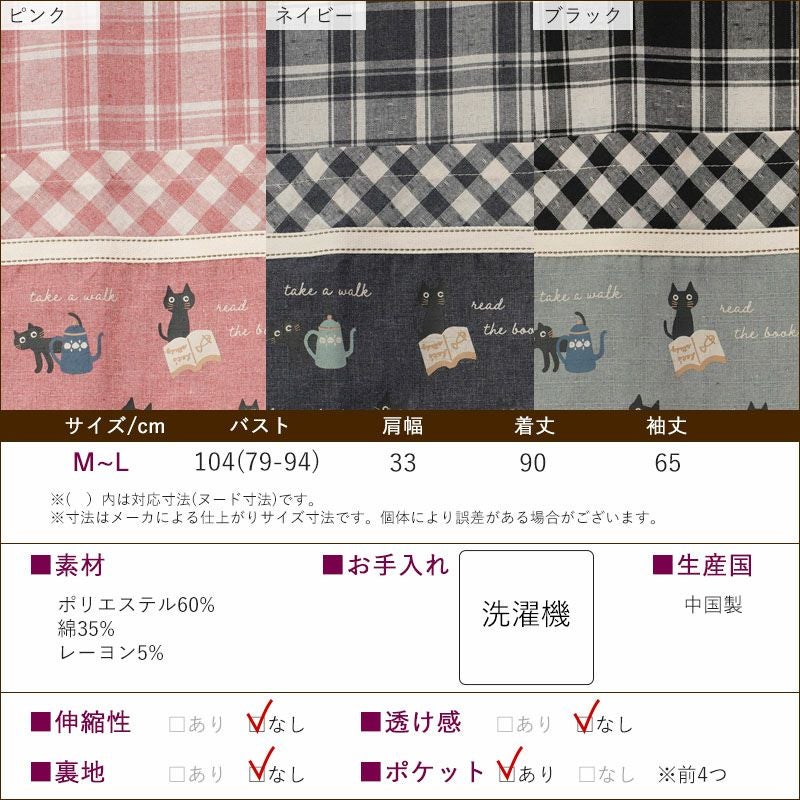 ●黒猫プリントチェック柄スリーブエプロン