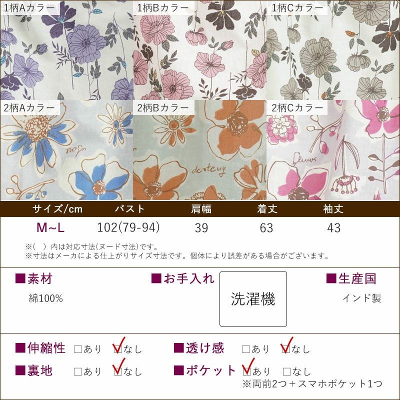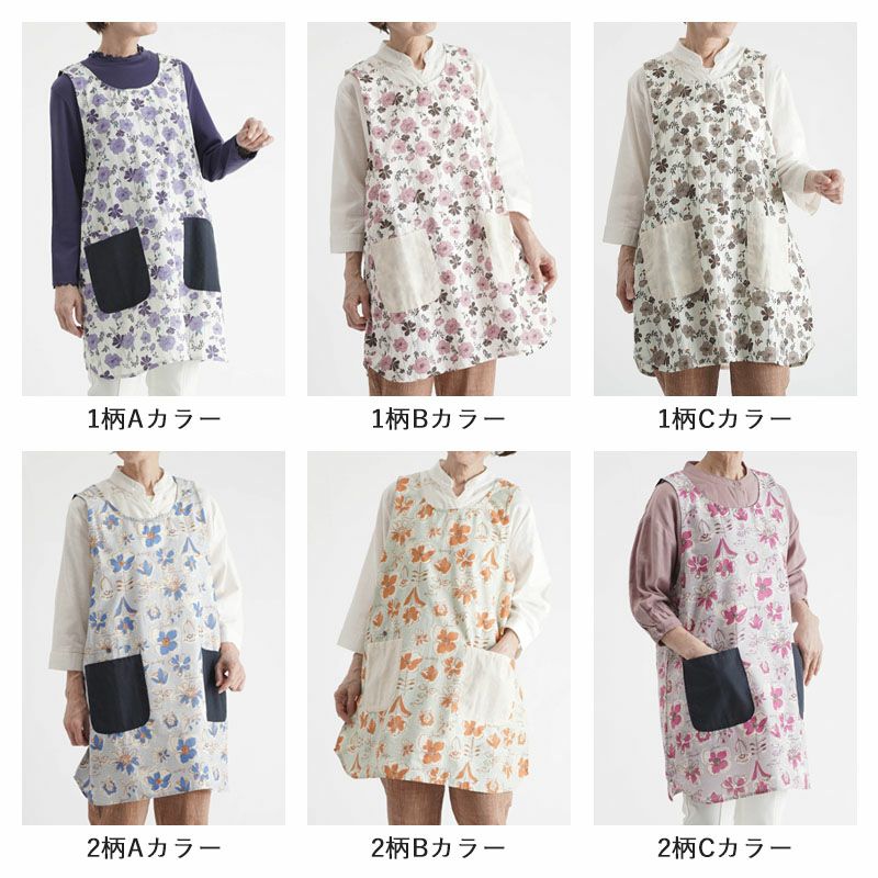● 綿100%の花柄チュニックエプロン:かぶって着るノースリーブタイプで、ゆったり快適。丈夫な綿100%素材で長く愛用できます。