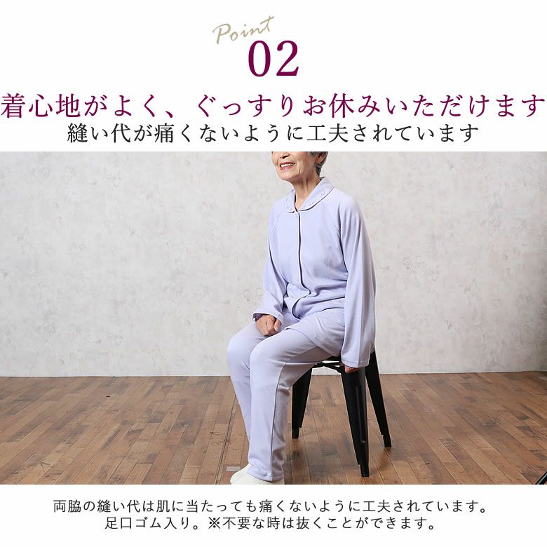 楽らく前開きマジックテープ留めスムースニットパジャマ
