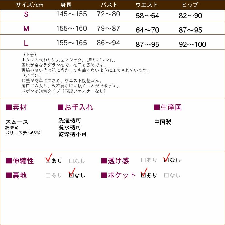 ・毎日のことだから、着脱しやすさ、肌へのやさしさを考えたパジャマ。 ・丸型マジック付。