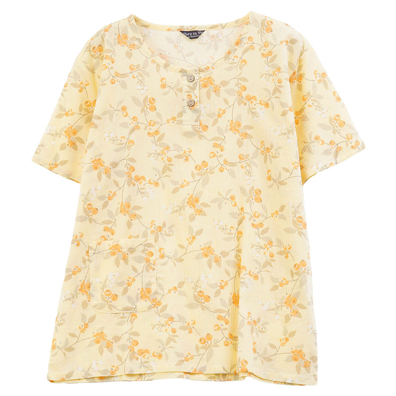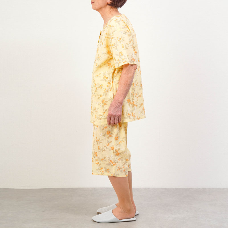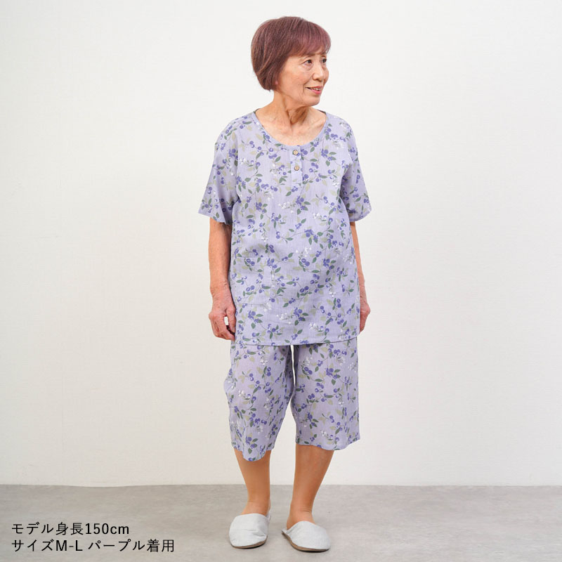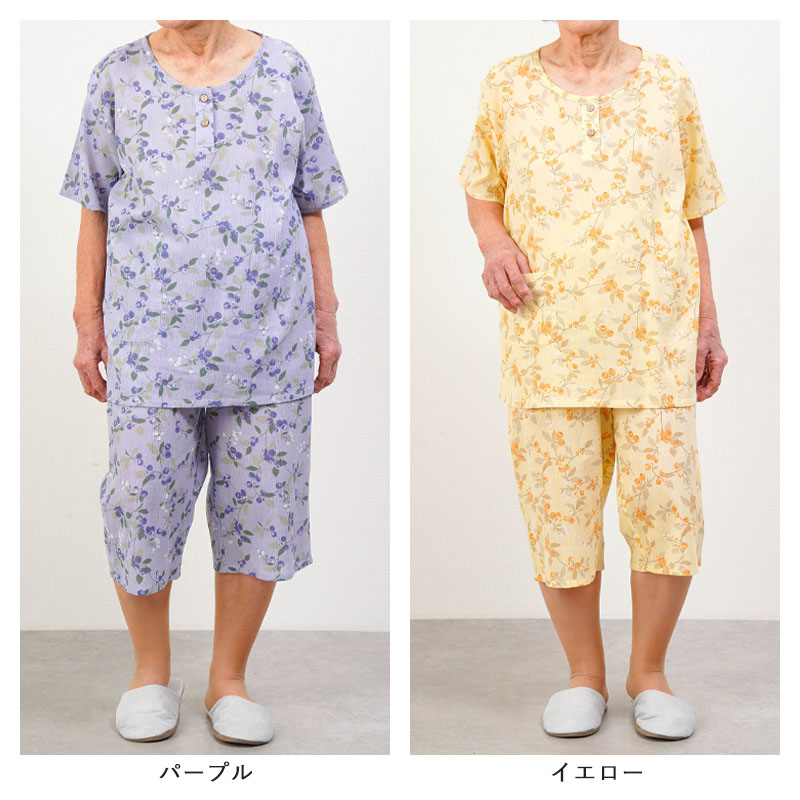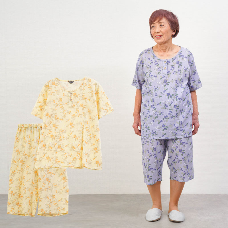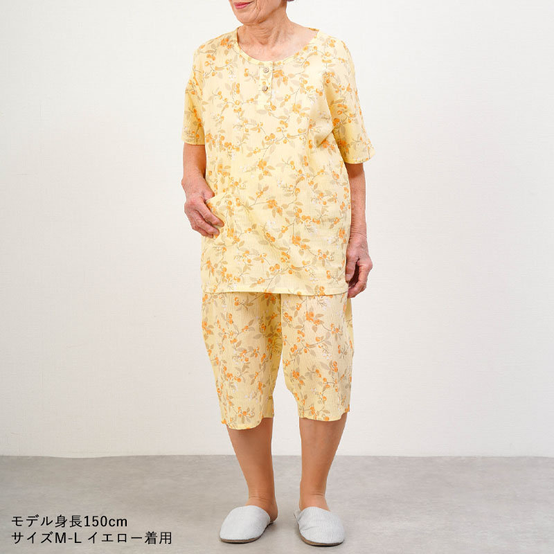 楊柳 綿100% 半袖シャツと七分丈パンツの上下セット パジャマ