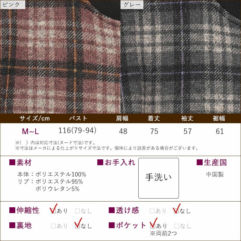 杢ニット 裏起毛 チェック柄プリント 前開きスモック