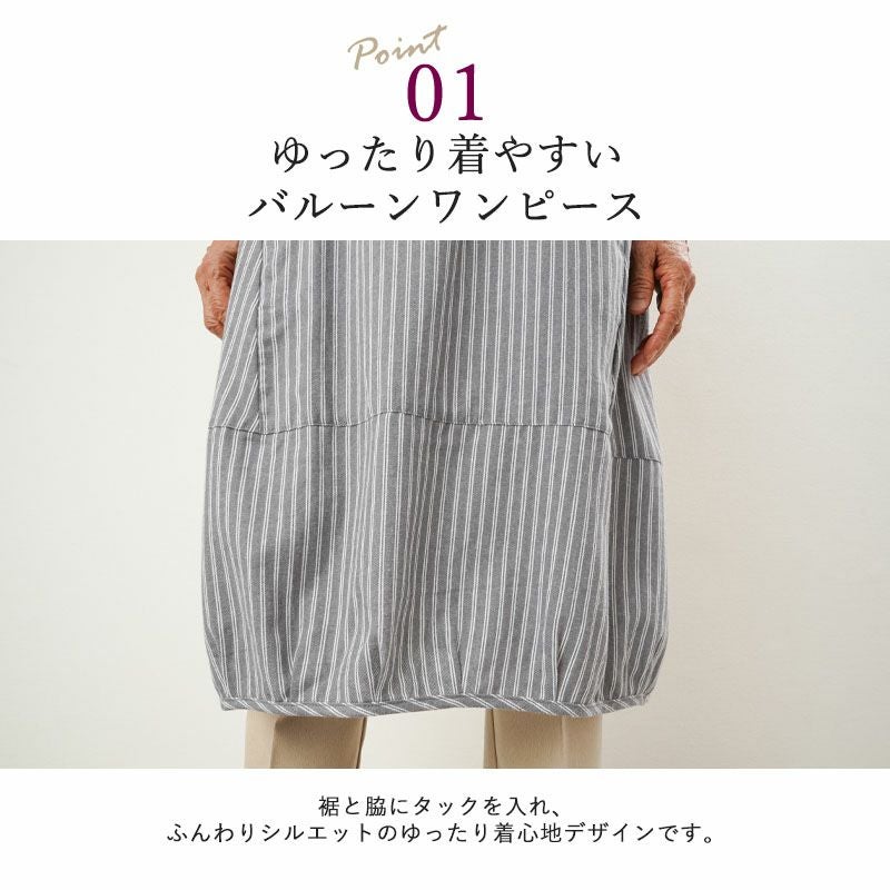 ストライプ柄微起毛バルーンワンピース