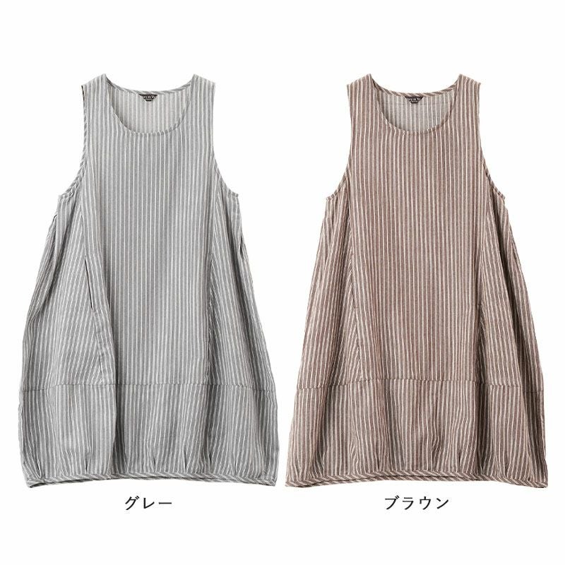 裾にタックを施し、ふんわり丸みのあるバルーンシルエットに仕上げたノースリーブワンピース。脇にもタックを入れたゆったりデザインです。