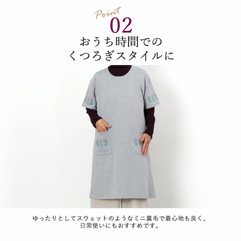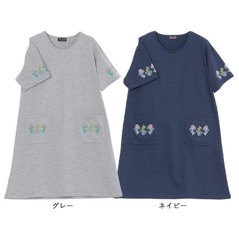 ミニ裏毛 花刺しゅう 半袖チュニック