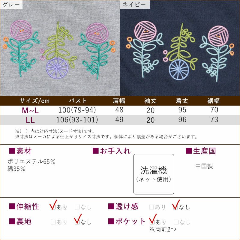 コロンと愛らしい花刺しゅうが可愛く、ロング丈でレイヤードスタイルを楽しめます。