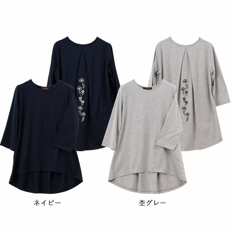 七分袖バック刺しゅうチュニック