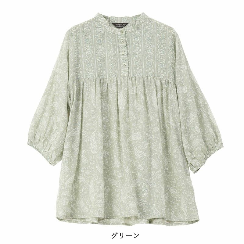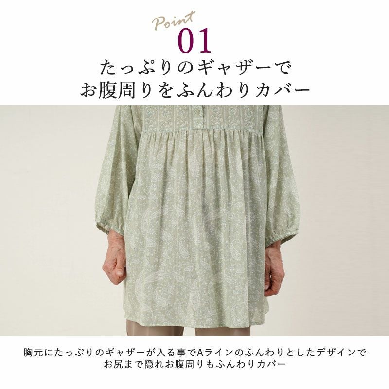 綿100%ガーゼ ペイズリープリント チュニック