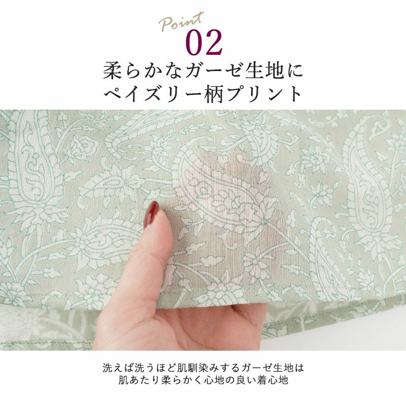 ●落ち着いたペイズリープリントが魅力の綿ガーゼプリントチュニック。柔らかなインド綿100%ガーゼ生地は、洗うほどに肌に馴染み、快適な着心地。