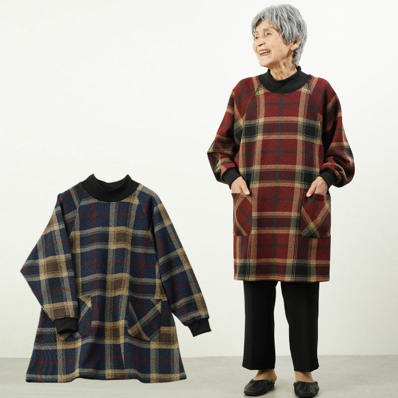 裏起毛 チェック柄 プルオーバー チュニック