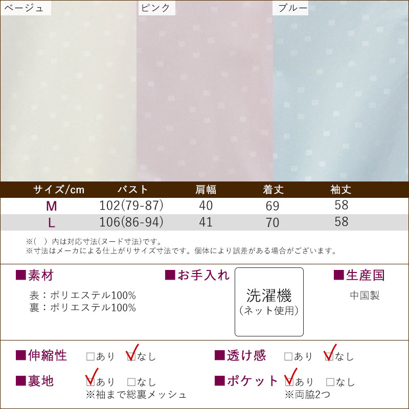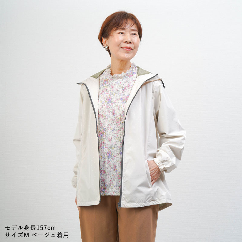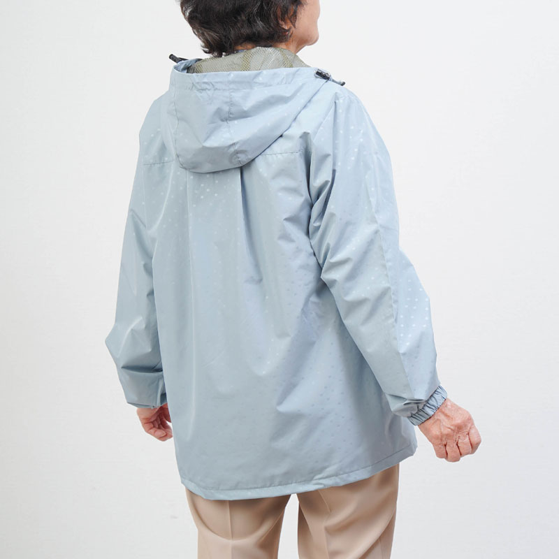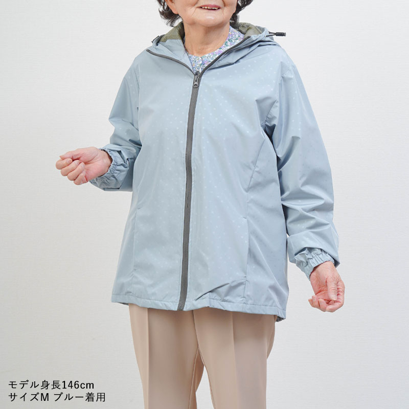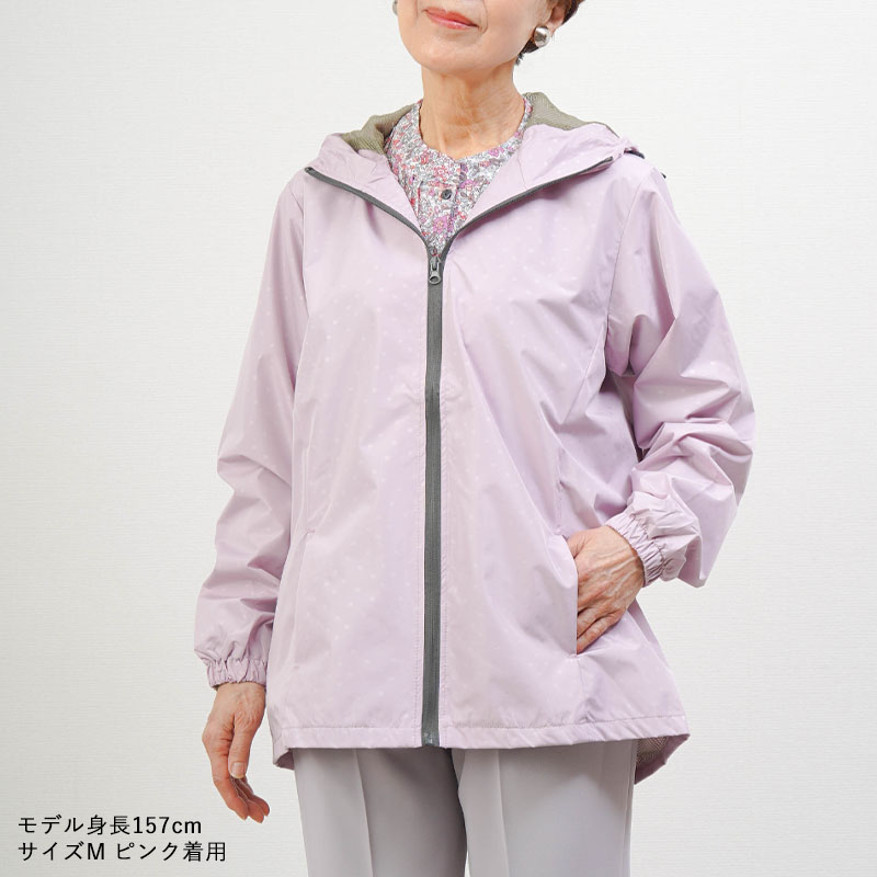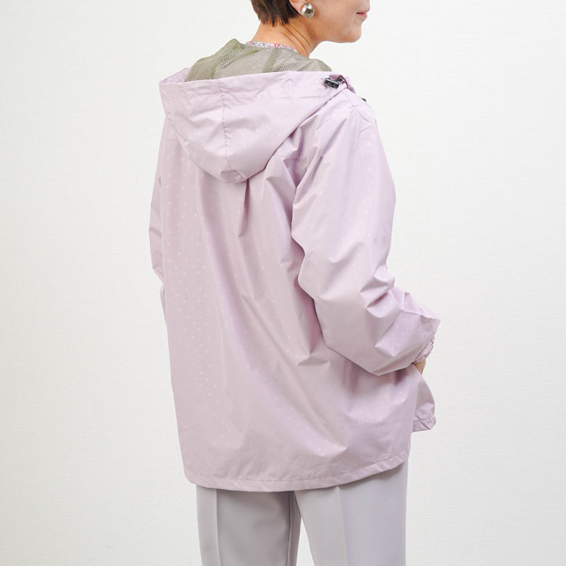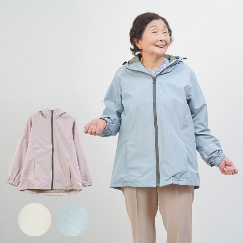 ● 上品で若々しいドット柄が特徴の軽量ジャケット。落ち着いた印象で、年配の方でも自然に着られます。