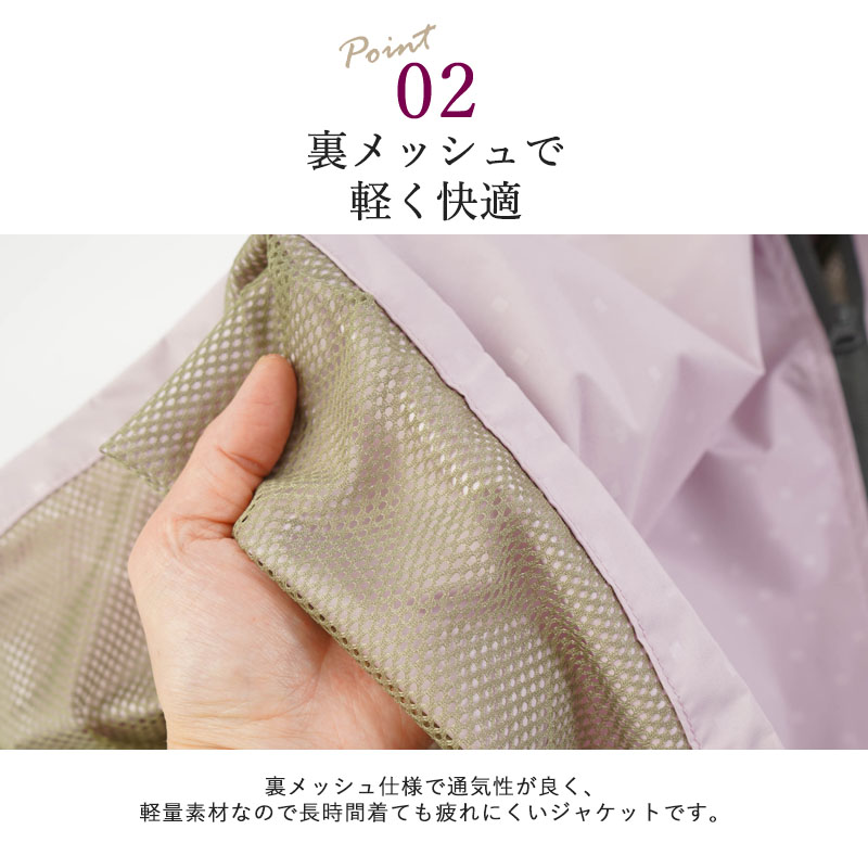 ● 雨・風・花粉を考えた機能性ジャケット。防風加工で急な雨風にも安心。外出時の冷えや花粉対策にも役立ちます。