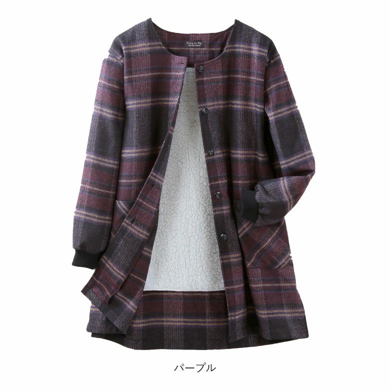 上品な格子柄 背にはボア付きで とても暖かなスモックです
