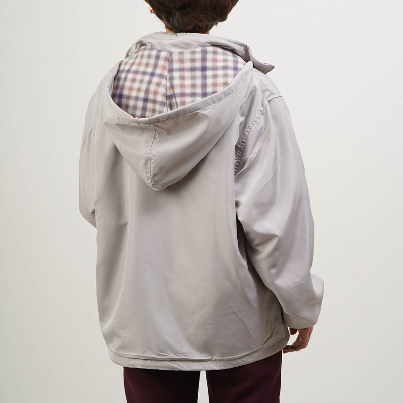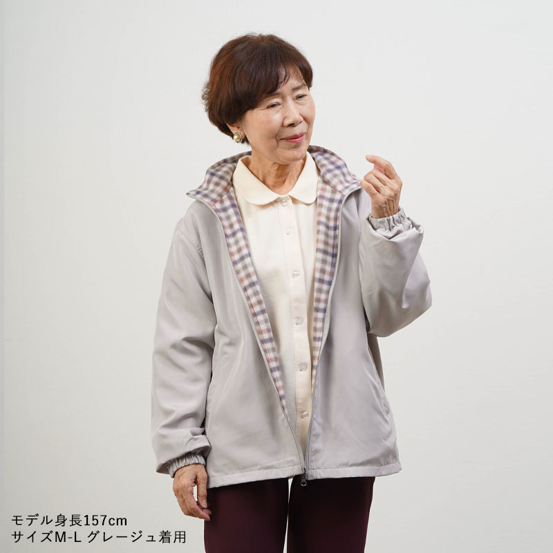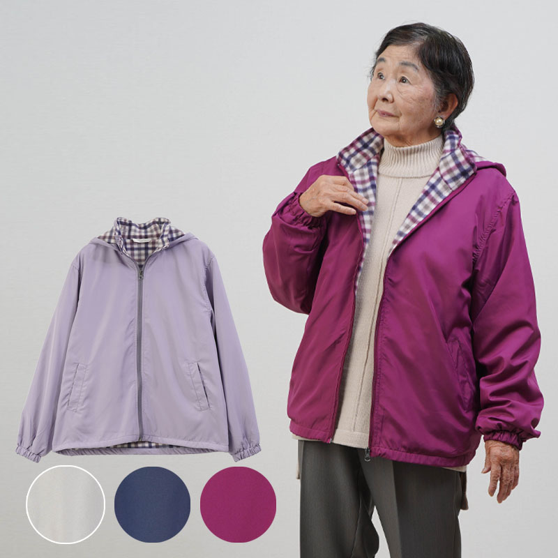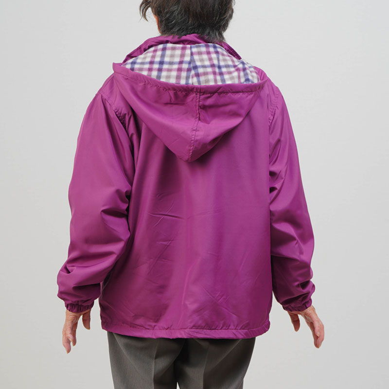 ●取り外し可能なフードで2way仕様。袖口ゴムで風をしっかり防ぎ、高齢の方にも着やすい実用的な設計です。
