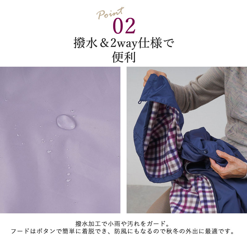 ●撥水加工で軽い雨や汚れに強く、普段使いに安心。風を防ぐので秋冬のちょっとした外出に頼れる一枚です。
