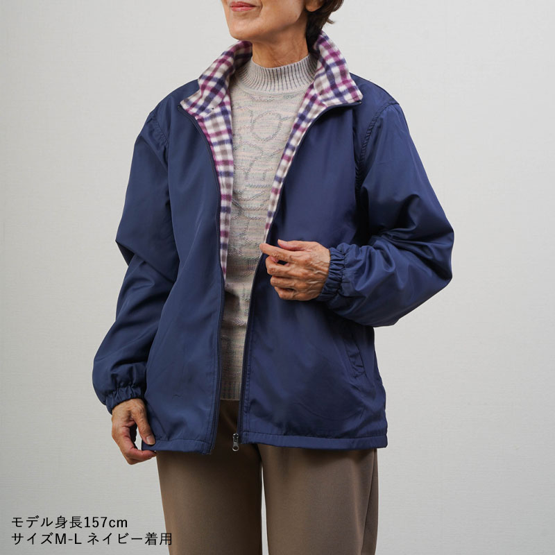 ●裏地はチェック柄のフリース素材で、保温性抜群。寒い季節のお出かけや散歩にぴったりの暖かいジャンパーです。