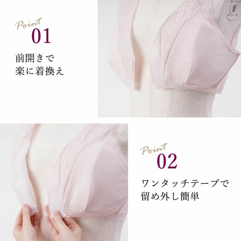 ●前開きワンタッチテープで簡単着脱:前開き仕様により、チクチクしないなめらかワンタッチテープで留め外しもラクラク。高齢の方や介護時におすすめの「らくらくブラ」です。