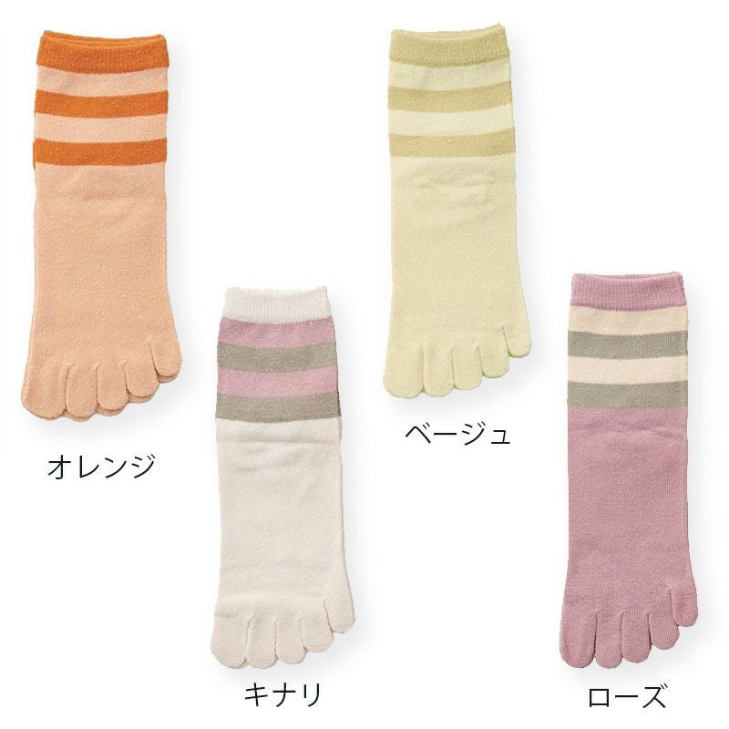 婦人用 シルク5本指靴下 ボーダー柄