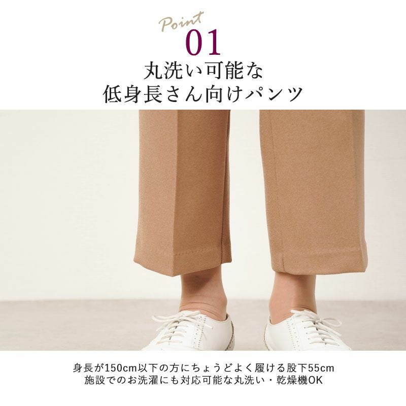 ●ウールのような高級感ある質感なのにシワになりにくく丸洗いOKのお手入れらくらくパンツ