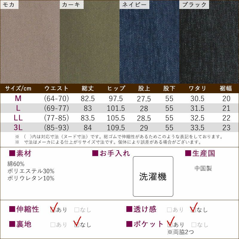 ウエストゴム入替え可能(やわらかタイプのゴム使用)、股下55cm