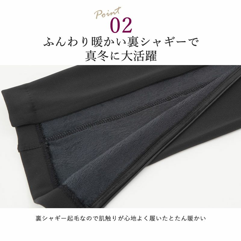裏シャギー 無地 裾ファスナーストレッチパンツ 股下55cm