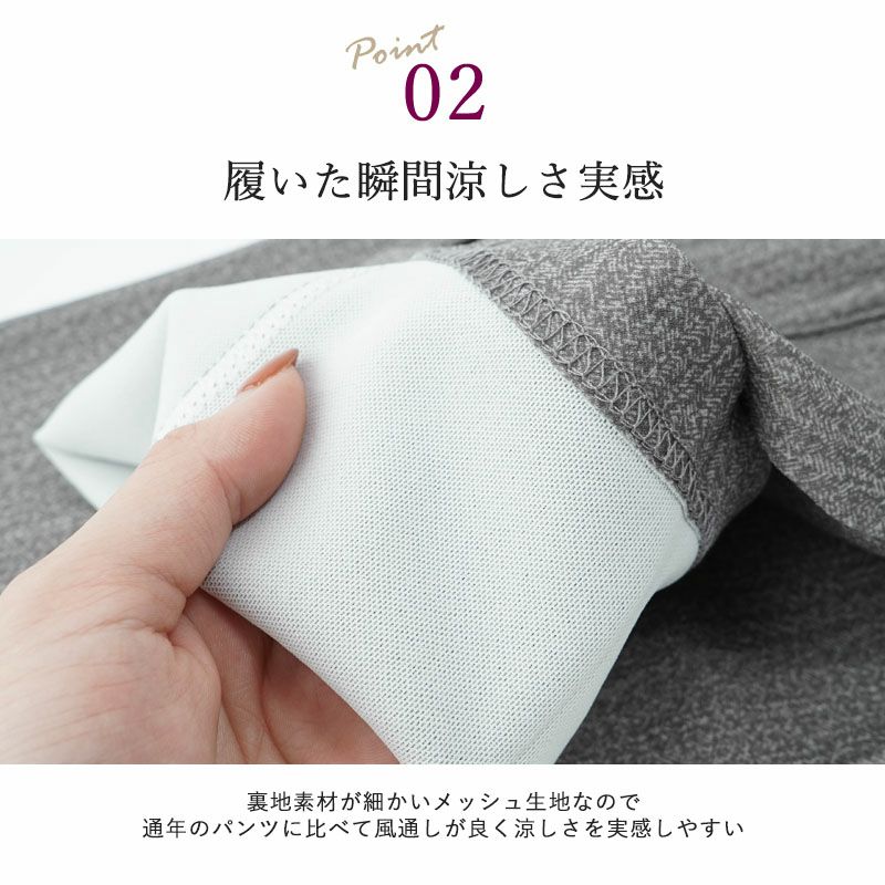 乾燥機対応 夏向き ひんやり裏メッシュ ストレッチ パンツ 股下55cm