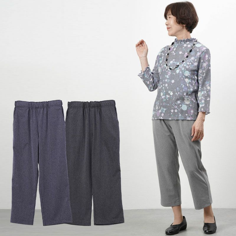 乾燥機対応 やわらか綿混 きれいめイージーパンツ 股下55cm