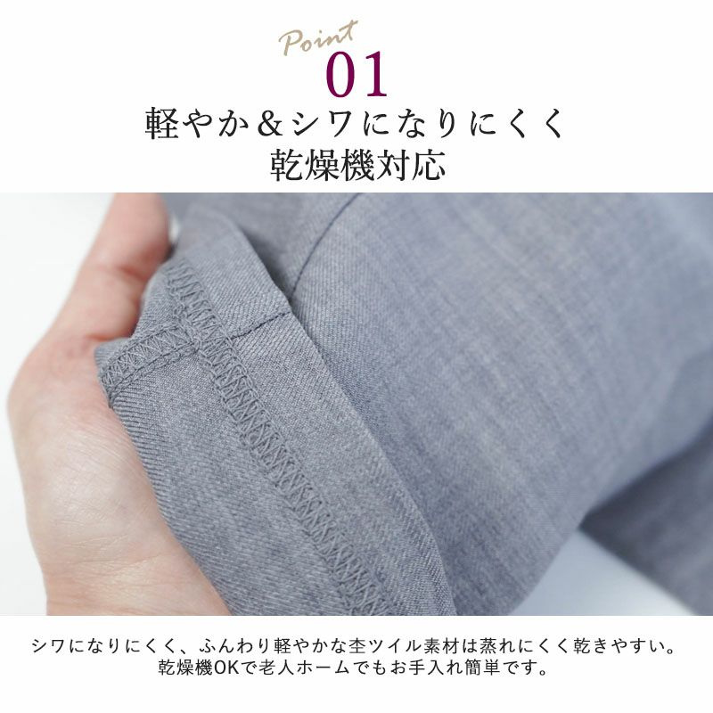 ● ふんわり軽やか&シワになりにくい杢ツイル素材:やわらかくソフトな肌ざわりで快適。軽くて蒸れにくく、乾きやすいので夏の毎日使いにもぴったり。
