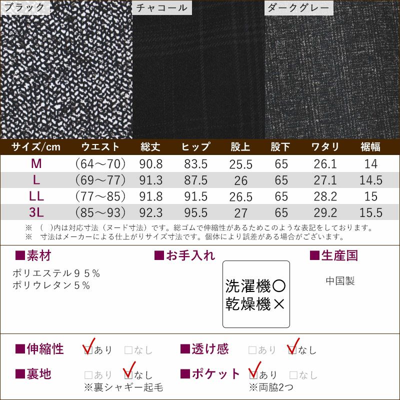 裏シャギー チェック柄 ツイード柄 プリント ストレッチ レギパン 股下65cm