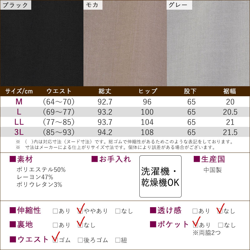 (素材)ポリエステル50% レーヨン47% ポリウレタン3%