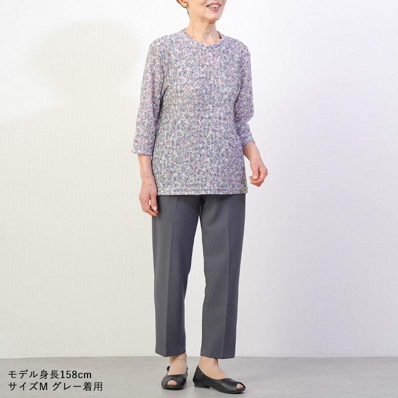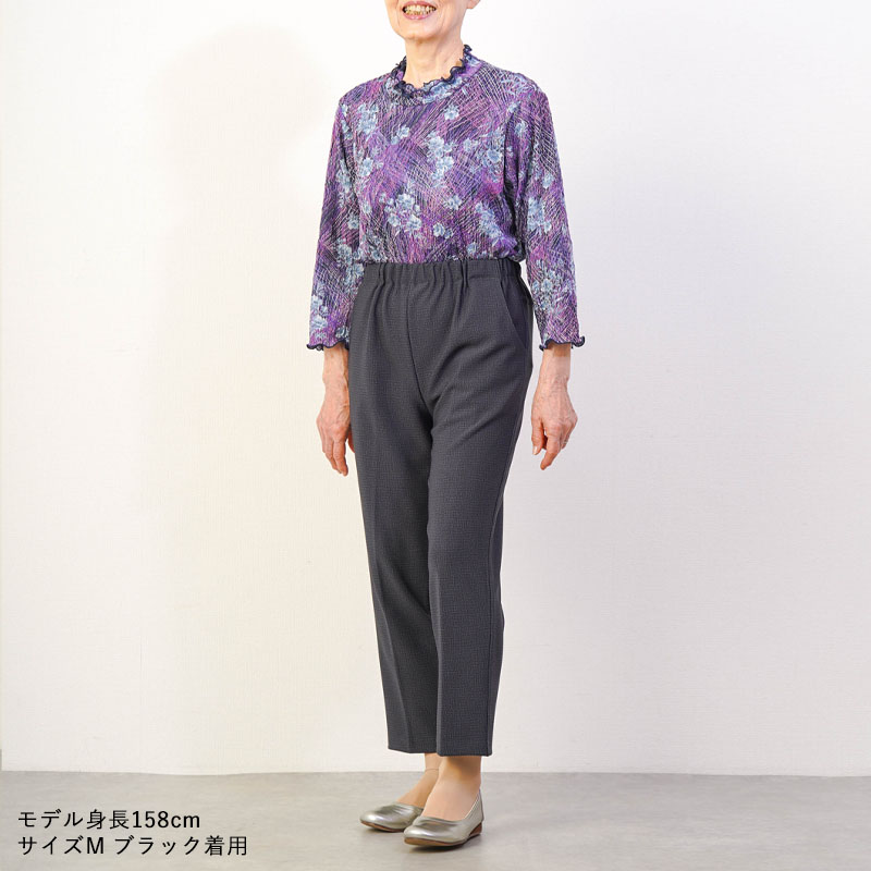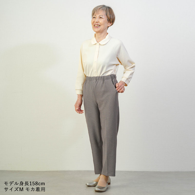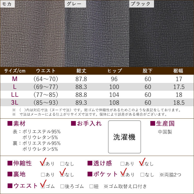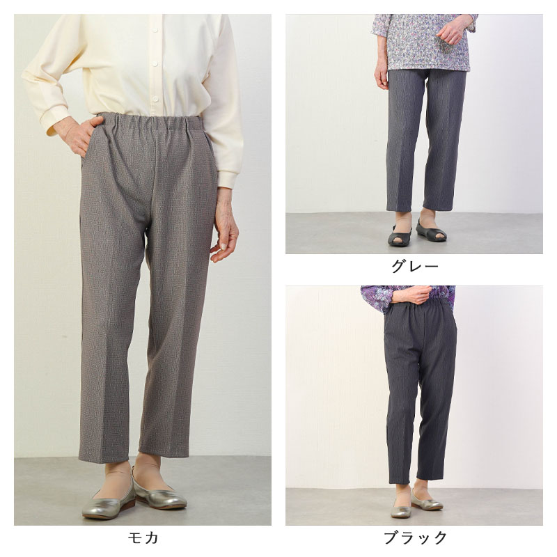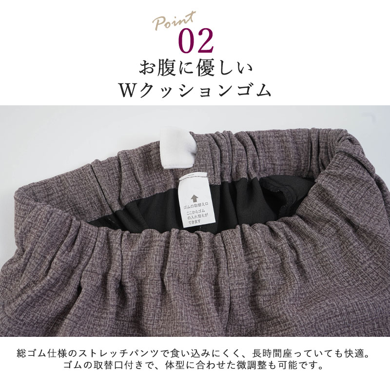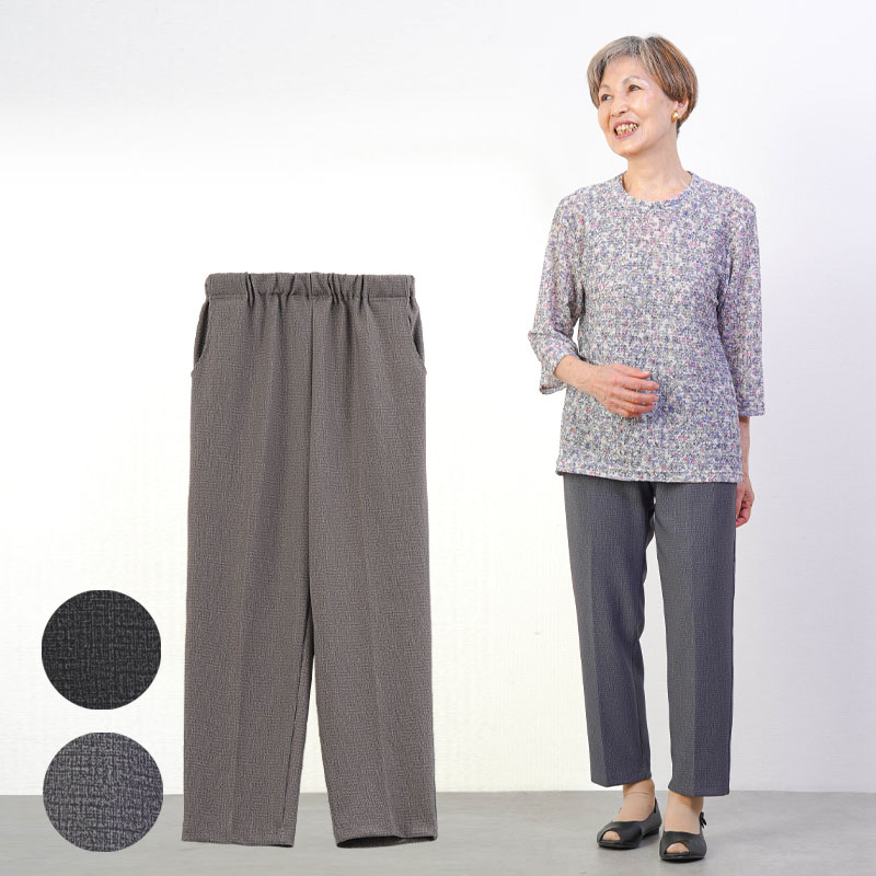 汚れが付きにくい 撥水 UVカット ツイード調 ゴム入れ替え ストレッチ パンツ股下60cm