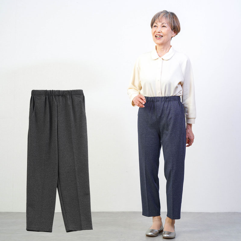 シワになりにくい 杢調 ゴム入れ替え ストレッチ パンツ 股下60cm