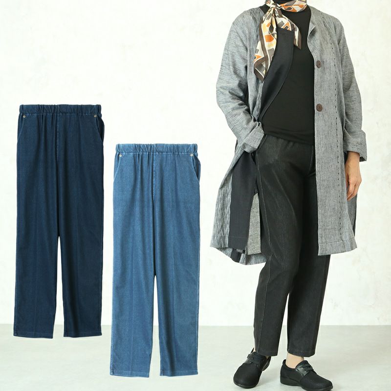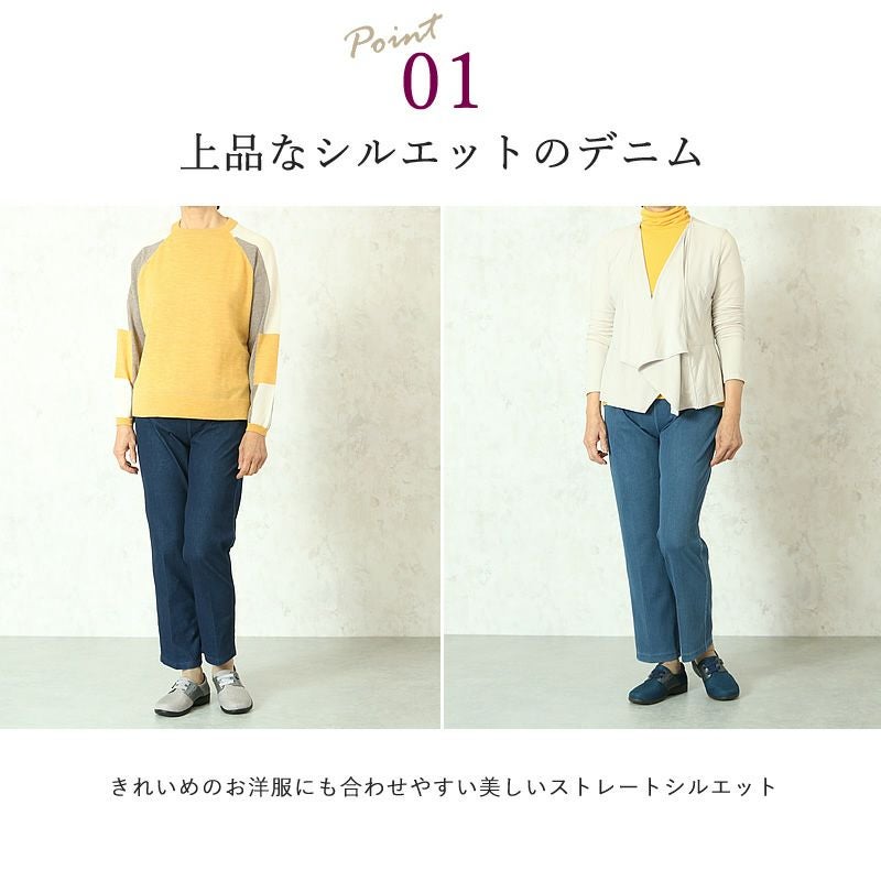やわらかデニム ストレッチ きれいめストレートジーパン 股下62cm