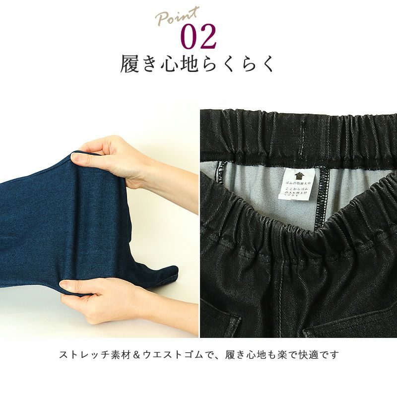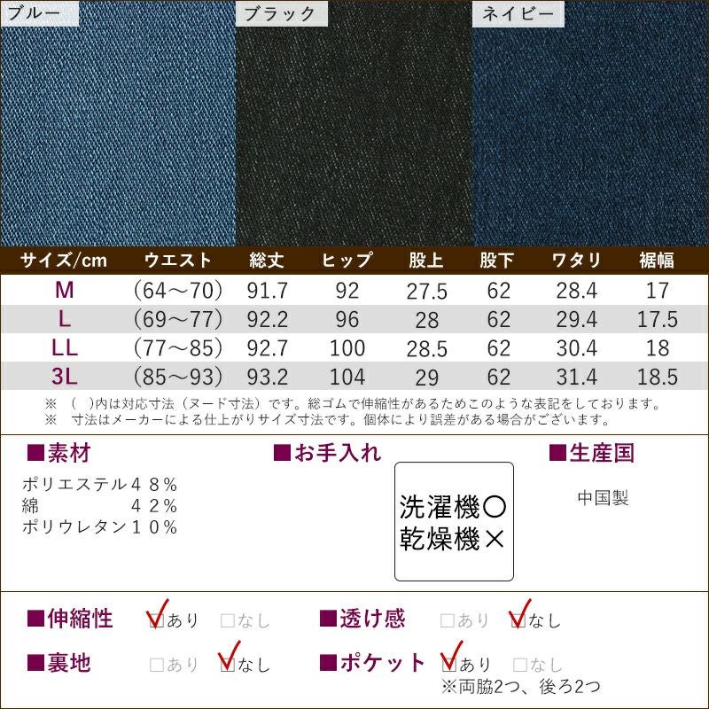 ウエストゴム入替え可能、後ろポケット付き、股下62cm