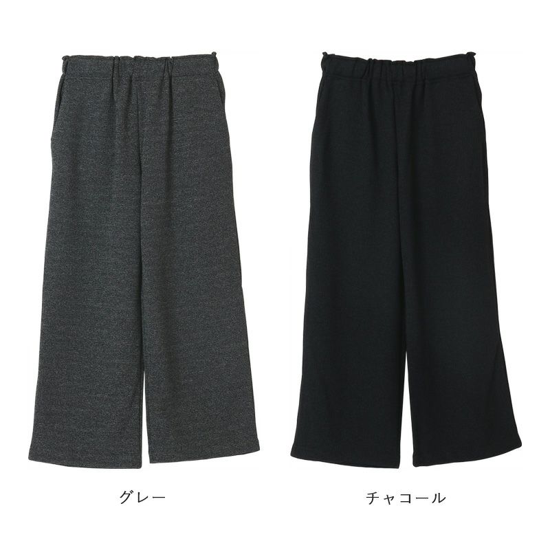 ワッフル素材 ゆったりイージーワイドパンツ 股下55cm