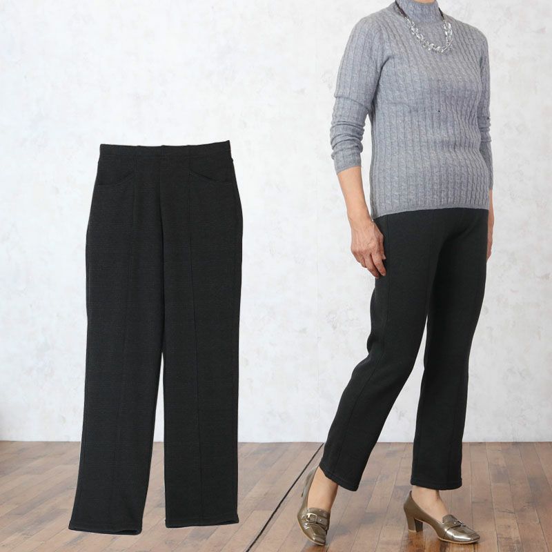 裏シャギー ジャカード ストレートフィット ストレッチパンツ 股下62cm
