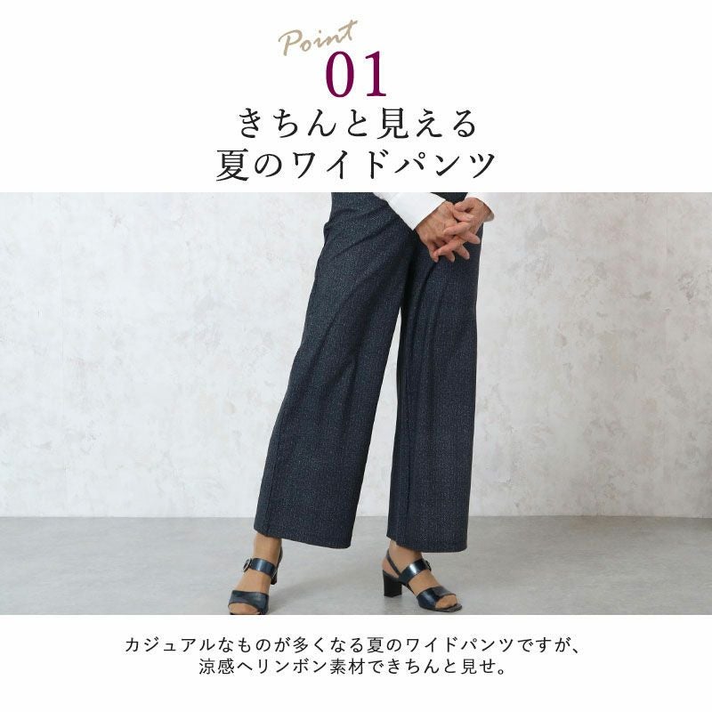 サラ冷 ヘリンボン おしゃれワイドパンツ 股下60cm