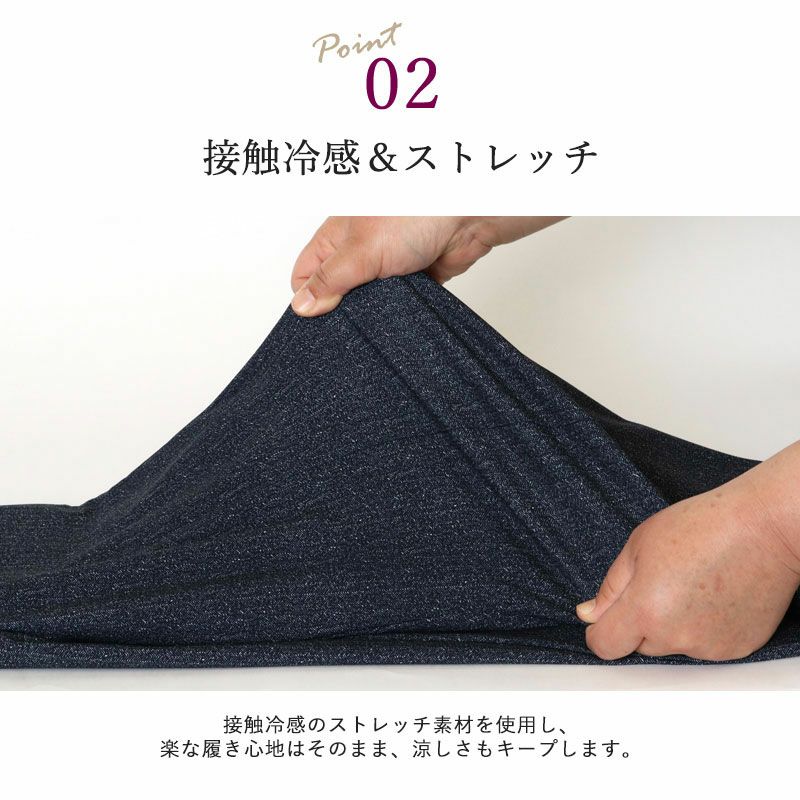 涼感素材を使った夏向きのストレッチワイドパンツ。