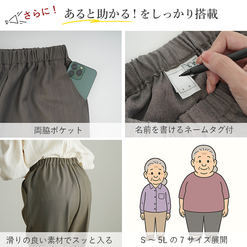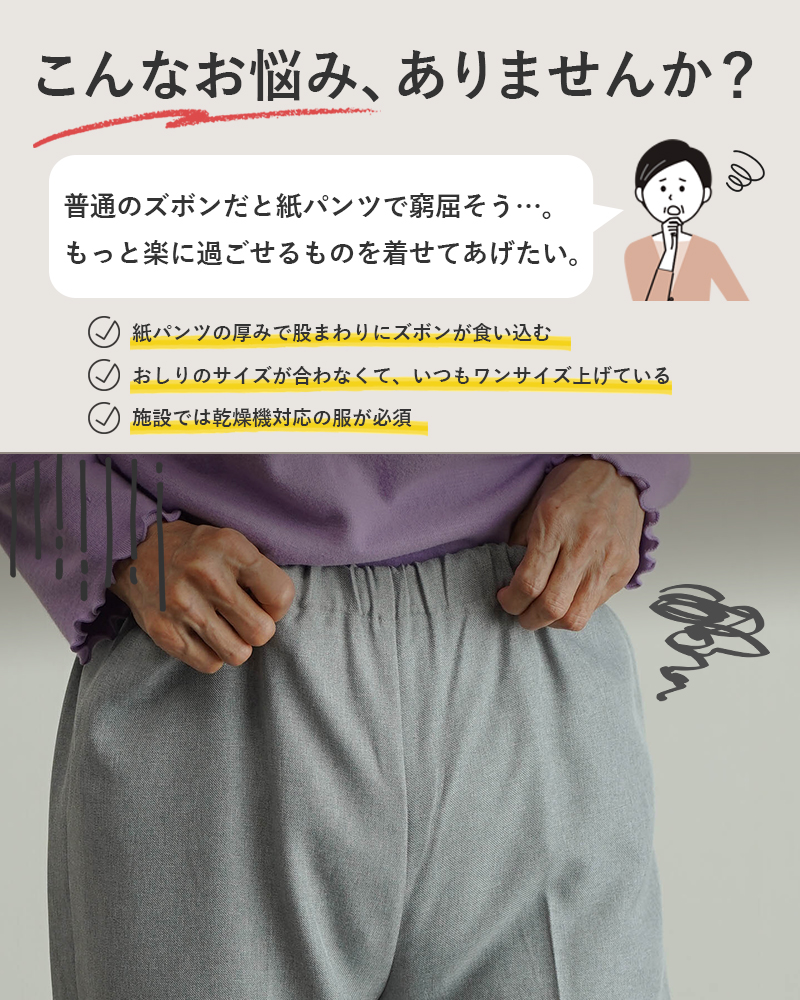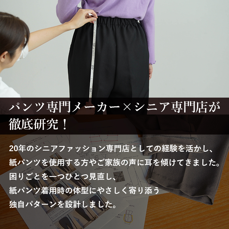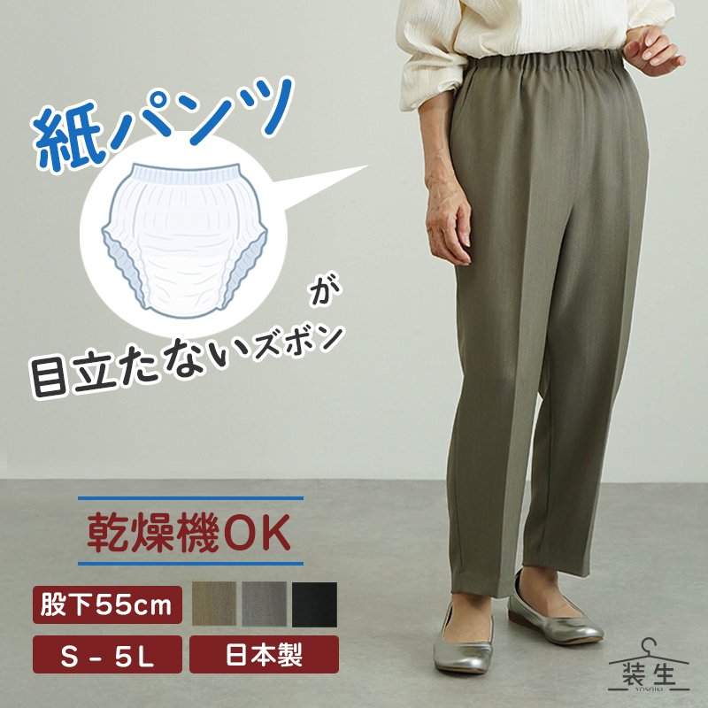 [装生] 日本製 乾燥機対応 紙パンツ・おむつ対応 ゆったりスラックスパンツ 股下55cm