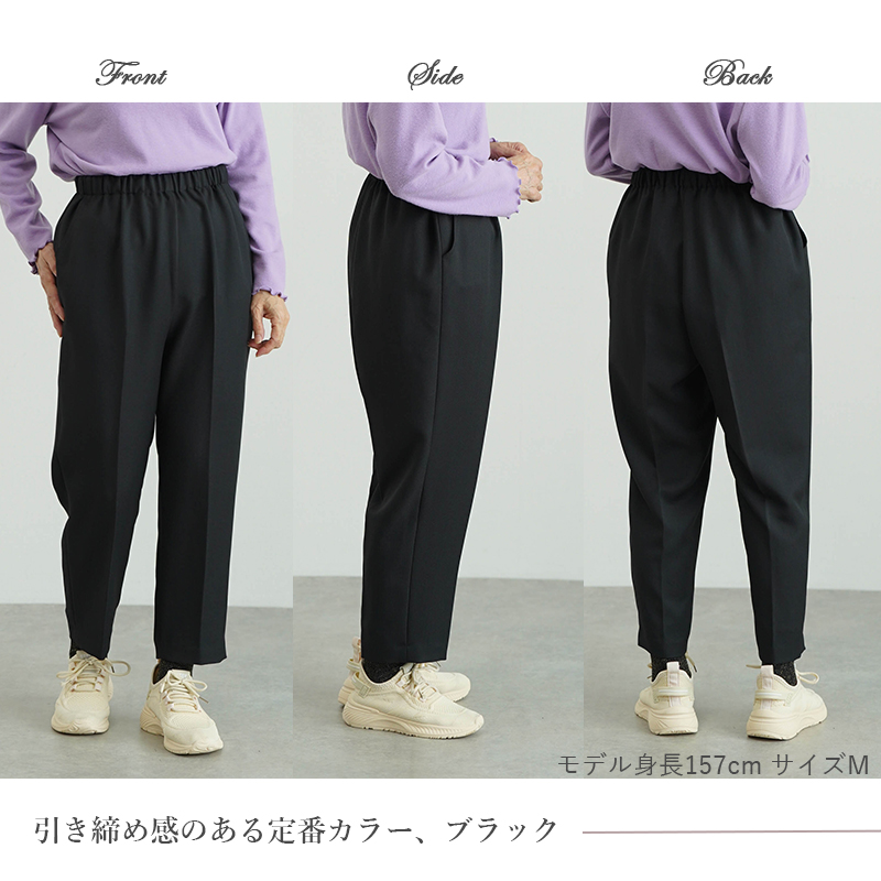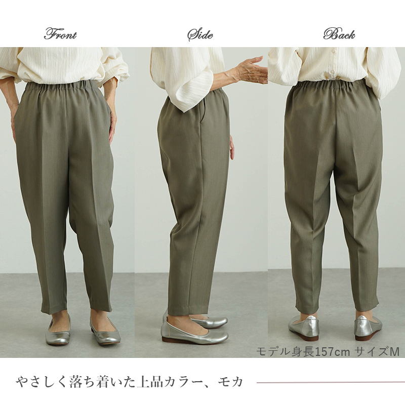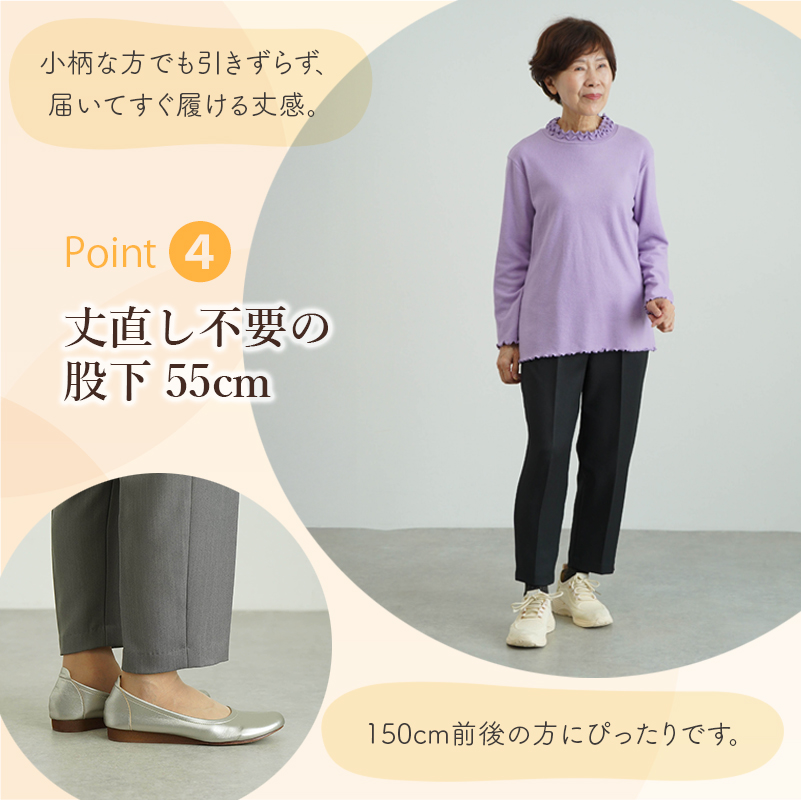 ●股下55cmの丈直し不要デザイン。小柄な方でも裾を引きずらず、届いたその日からすぐ履けるズボンです。