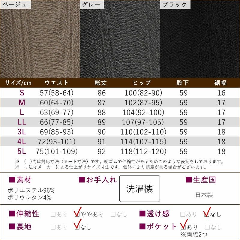 日本製 ミニへリンボン 通年用 履きやすいスラックスパンツ 股下59cm