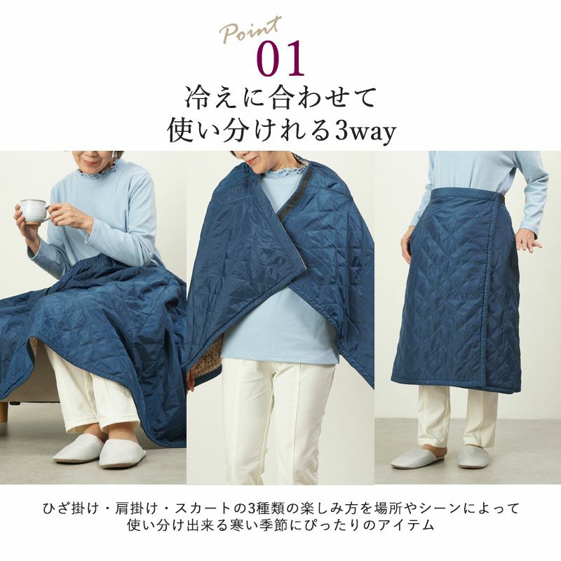 防寒 裏フリース キルティング 無地 巻きスカート 70cmロング丈