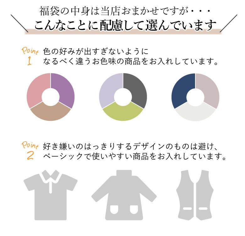 シニア向けトップスが3点入ったお得な福袋です。中身は当店お任せとなります。