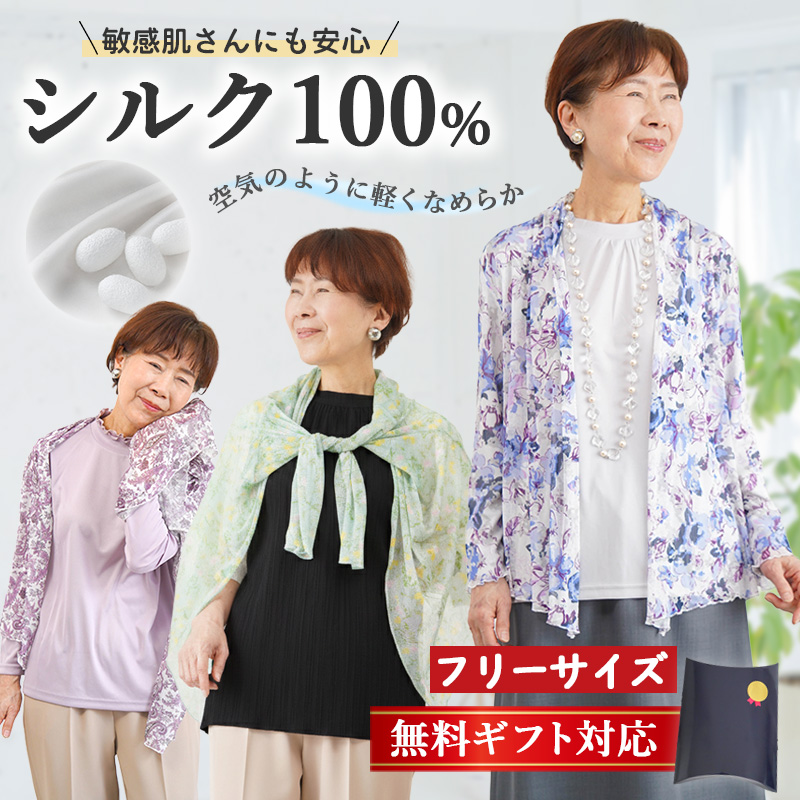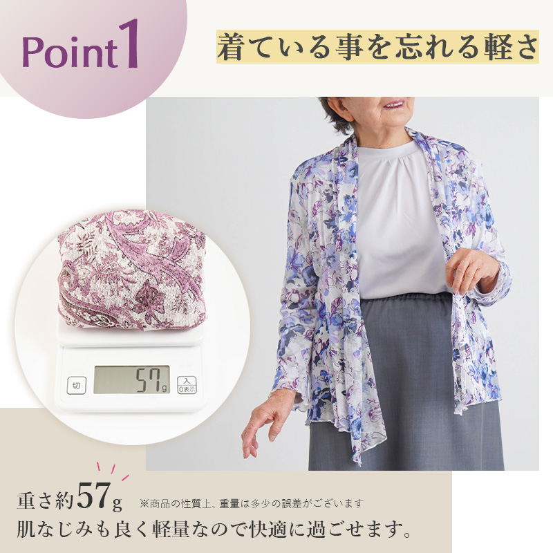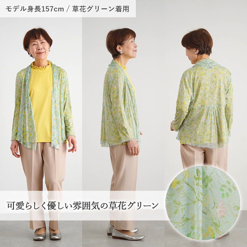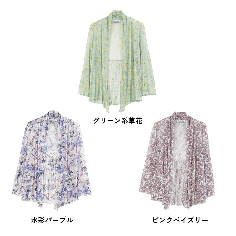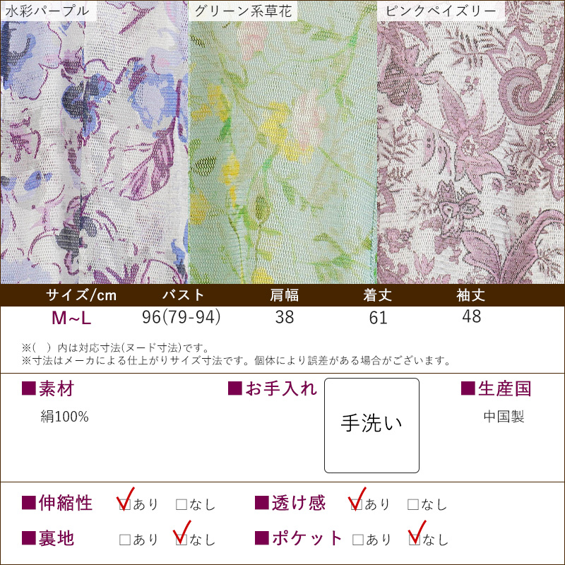 シルク100% パワーネット 羽織り カーディガン 花柄